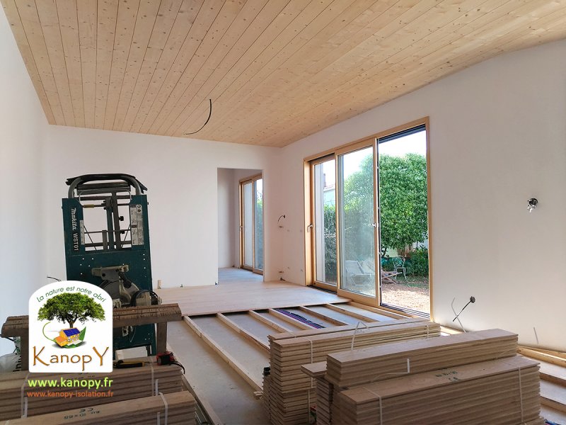 Parquet, Fermacell aux murs et lambris en pin naturel au plafond