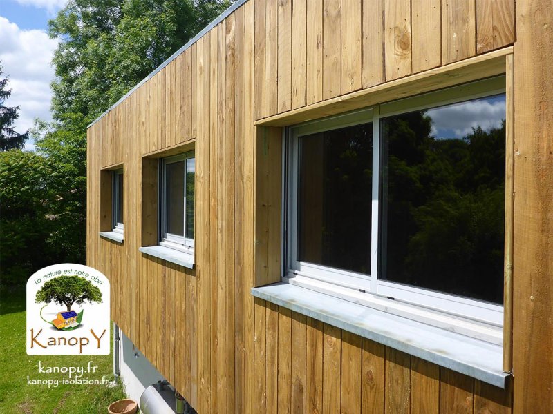 • bardage douglas teinté marron (pose verticale à claire-voie)